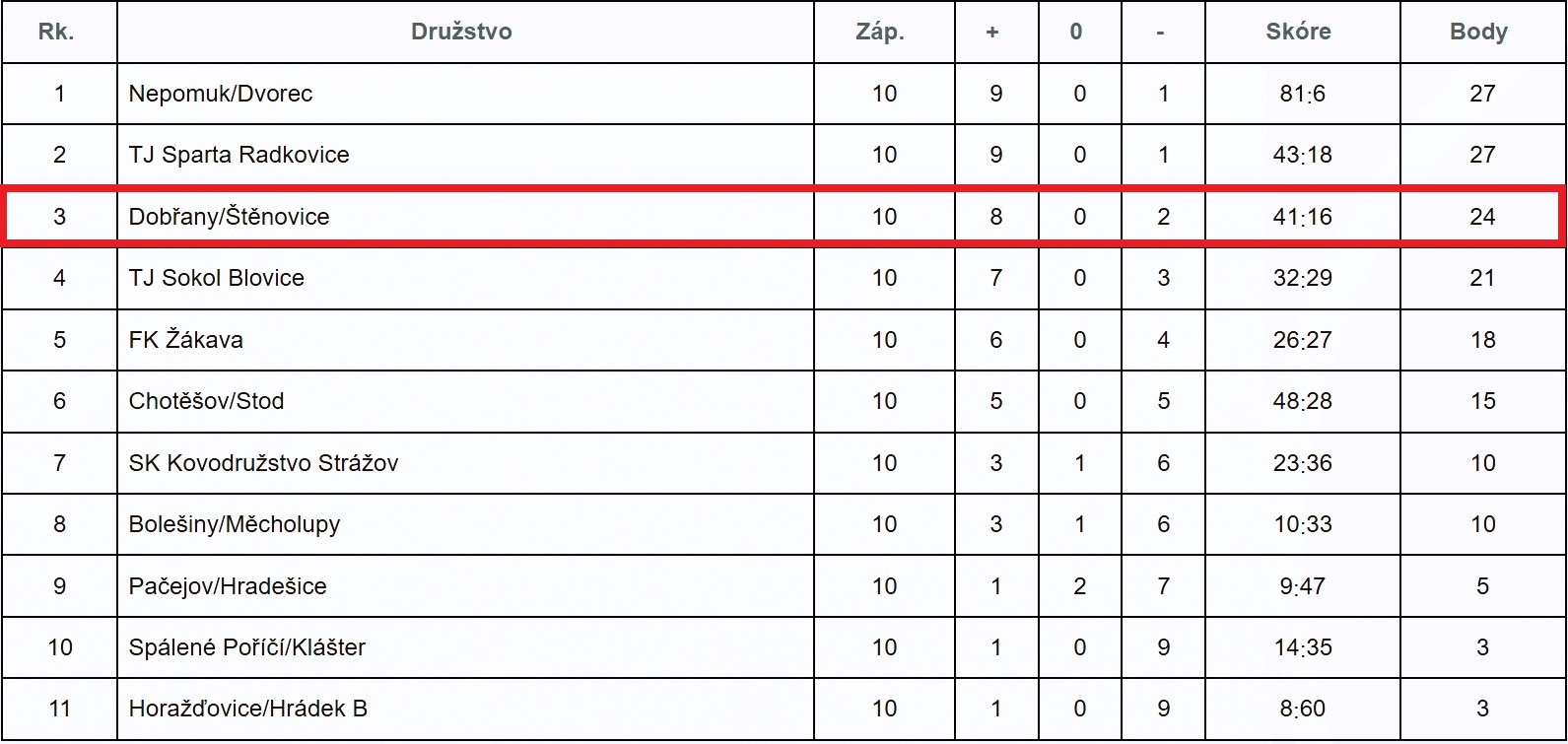 Radkovice – MP 6:4, MP – Štěnovice 8:0, MP – Klášter 7:2
